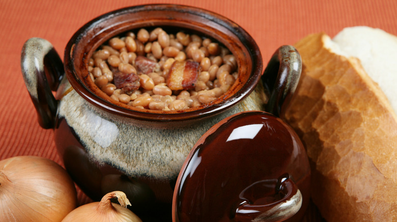 As for the origins of baked beans, it's hard to pinpoint where they came from, except to say that Indigenous peoples regularly cooked legumes with bear fat and maple syrup, and the Brits were well-known for their bacon-forward bean dishes. Both of these likely informed the recipe that eventually morphed into Boston baked beans. Today, the navy bean is considered to be the state bean of Massachusetts, and to this day, many Bostonians own a souvenir bean pot used to make their beloved baked bean dish.