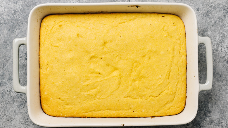 A purported favorite dish of former president James Monroe, the term "spoon" was not attached to this recipe for bread until 1904. It was in this year that "The Blue Grass Cookbook" was first published with a recipe inside entitled "Spoon Corn Bread." This recipe featured copious quantities of buttermilk and baking soda, which worked in tandem to produce the impossibly light and airy texture that's quintessential for this nostalgic dish.