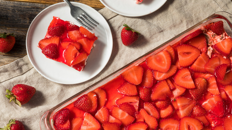Another popular old-fashioned picnic dish that has faded from mainstream popularity is the strawberry pretzel salad. Despite its moniker, this sweet treat isn't even a salad in the traditional leafy lettuce and vegetable sense. Instead, it's a delightful layered concoction lots of people have nostalgic memories of, like one Reddit user who knows it as a Christmas dessert, saying, "My mom's been making it as long as I can remember."
