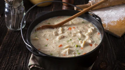 Two of the ingredients in our impossibly easy chicken pot pie recipe are canned cream of chicken soup and frozen mixed vegetables, so it only makes sense that adding veggies to your pot of soup will give it more substance. While the three vegetables of mirepoix — carrots, celery, and onions — offer a classic combination of aromatics used for many dishes, including soups, you can pretty much add any fresh or frozen vegetables you like, such as peas, creamed corn, or potatoes.