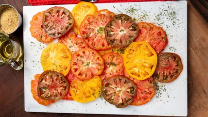 Tomatoes are at their freshest during their summer harvest period. If you grow your own and have an abundance, you might be wondering what to make with fresh tomatoes so they don't go to waste. Sure, you can slice them up for sandwiches or mash and cook them into pasta and pizza sauces, but a creative way of enjoying them fresh has blown up on social media this summer: the tomato flight. If you have not seen it yet, a tomato flight is similar to a beer or wine flight — giving you a variety of flavor combinations on one plate.