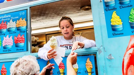 Buying ice cream on the street used to be a risky proposition. In the late 1800s and early 1900s, your scoop of ice cream would come in a reusable glass bowl, called a penny lick, which you'd have to finish quickly so it would be available for the next customer. This was just as unsanitary as it sounds. Everything changed, however, with the invention of edible cups and cones as well as portable ice cream treats. Ohio resident Christian Kent Nelson devised the idea of ice cream bars covered in a hard chocolate coating, and another Ohioan, Harry Burt, pioneered the idea of ice cream on a stick along with the idea of selling ice cream bars from trucks.