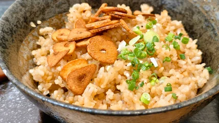 All you need to do is thinly slice some garlic. Fry those bits in a high-heat oil on medium heat for three to five minutes. They're ready when they turn a pale golden color. Be careful not to burn them, or they will taste bitter. Pour the oil and garlic through a strainer sitting atop a bowl. Make this transfer quickly so the oil doesn't continue to cook the bits. Then, place the fried goodness on a paper towel to dry and sprinkle with salt. Both the oil and chips will keep in the fridge for up to a month. You can also fry garlic even faster in the microwave, although it's a bit of an uneven cook this way.