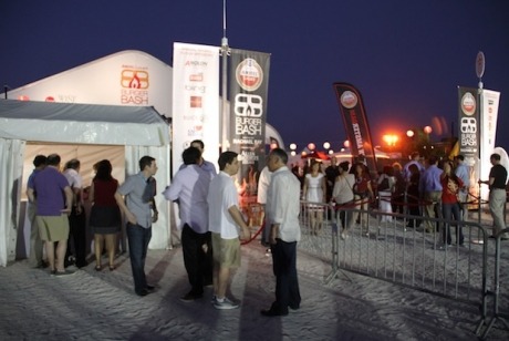 Thursday, 2/24, 5:52 p.m. Finally, the 2011 Food Network South Beach Wine & Food Festival is here! It's a big one, with it being the tenth anniversary of the event (or at least, most people agree it's the tenth year, wink). The tents are up on the beach, the scalpers are out looking for extra tickets, and there's burger buzz in the air. It's time to head over to the kickoff event: Amstel Light Burger Bash presented by Allen Bros., and hosted by Rachel Ray. We've seen the menu preview and made our predictions. Now it's time to see who takes home the trophy. Here we go...