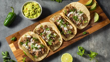 Part of the fun of serving tacos is having plenty of toppings on hand so everyone can create a little customized bundle of goodness. You could stick to easy classics, like shredded cheese, guac, sour cream, and cilantro, or put in a little more effort with grilled corn kernels and homemade refried beans. However, there's also plenty of opportunity to upgrade the star of the show, too. For instance, you can take your carnitas up a notch by adding a dash of condensed milk to the slow cooker as the pork simmers to boost the caramelization process. This trick produces shreds of meat that have a crispy exterior and plenty of textural complexity.