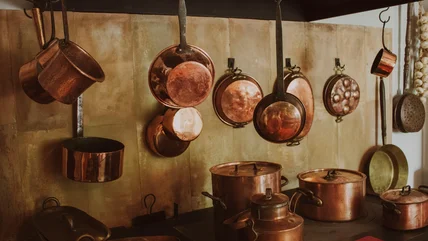 When looking for secondhand copper cookware, there are a few things to keep in mind. Copper is a heavy material, so you should seek out pots or pans that have some weight to them. If they're too light, it might indicate that it's only lined with copper and not made entirely of the metal. One Reddit user explained, "From my experience, good copper pans are no joke when it comes to price (and weight!). I learned that the hard way after picking up a cheap one online, it was super thin and the food burned so easily."