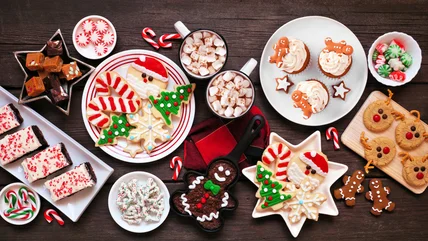 Rice Krispies treats are made by stirring puffed rice into a mixture of melted marshmallows and butter. To lend them a holiday feel, simply sub the plain rice for Cocoa Krispies and add a dash of peppermint extract to your melted marshmallow mixture. Next, stir through some crushed candy canes or sprinkle them over the top as they set to give the bars an interesting texture and maximize their cooling character. The awesome thing about this technique is that there's plenty of room for experimentation. For instance, if you don't have any Cocoa Krispies on hand, the best cereal substitutes for regular Rice Krispies treats include Chex and cornflakes. A spoonful of hot chocolate powder will jazz up your plain Rice Krispies treats and imbue them with a rich chocolatey personality too (use mint-flavored hot chocolate if you don't have mint extract available). Additionally, feel free to drizzle over melted chocolate for a delectable finish.