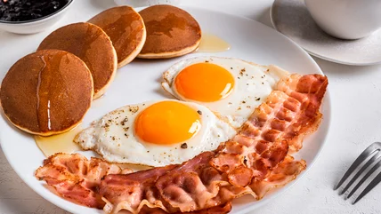 Instead of doing this, you should apply some logic to your breakfast order. What can you get for the money that's going to leave you satisfied, and how can you balance tastier treats with more nutritionally sound options? Simple swaps like opting for a whole wheat muffin or toast may provide you with more vitamins or fiber, or asking for an egg white scramble instead of fried eggs can give you more lean protein on your plate. You can still have sausage and bacon if you want, of course — but don't make those the only items you're eating.