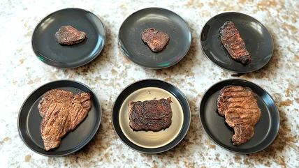 The extensive charring on the steak was visually appealing, but when it came time to eat, the ends of the meat were too burnt to actually eat. On a similar note, while the oil used in cooking lends a visually appealing shine, we found that it made the edible parts of the steak just a tad too greasy.