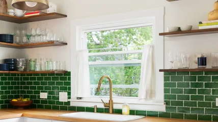 Stained glass window film brings a vibrance to any room rivaled only by actual stained glass, which is also vastly more expensive and time-consuming to install. Commonly available online, stained glass window film is a small, easy-to-accomplish DIY project. And not every design gives medieval church vibes; there are countless options available to suit virtually any style. It's one of the best creative ways to style kitchen windows.