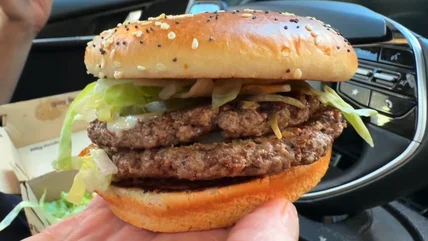 Rarely does another country's fast food scene get a big burger before the United States. But after success in France and the U.K., McDonald's is bringing its oversized Big Arch burger across the Atlantic to the home of big food. (We are the place where people watched a show about a man engaging in giant-portion food challenges, after all.) It's about time the Big Arch hits our shores, and it does seem to live up to its name. The Big Arch burger comes with two quarter-pound beef patties, three slices of white cheddar, crispy onions and slivered onions, plus the usual lettuce and pickles on a toasted poppy seed and sesame bun. The Big Arch is a 14-ounce burger coming in at over 1,000 calories.