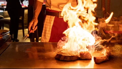 When it comes to going out for dinner, nothing says good food and entertainment like teppanyaki. This Japanese-style cuisine is where food is prepared on an iron grill, over an open flame, table-side. Spatulas and knives are juggled as shrimp and steak sizzle. Think of it as the juncture where the culinary world meets showmanship. It's a hallmark of the iconic Benihana restaurants made famous when the first one opened its doors in 1964. But if you've never been to the world's largest Benihana, it's time to pack your bags. If you live in the United States, no passport is needed. You just need a ticket to Las Vegas, Nevada.