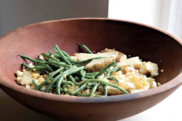 "We'll often make this salad with leftover cooked corn. And if we have a little summer squash or fresh peas or favas on hand, we'll cook them up and add them. You needn't worry if you have a little more of one ingredient or a little less of another — this salad isn't finicky. One more thing about this salad is that from time to time we'll toss in (at the end) some pitted oil-cured olives and small chunks of salty cheese like feta or ricotta salata. Add those, and you've got a meal."