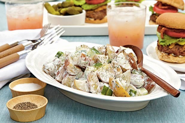 If you're not one for mayonnaise, this easy potato salad swaps in the thick condiment with two lighter options: sour cream and Greek yogurt. Cucumber and dill are added for a fresh burst of flavor, making this a well-rounded potato salad with all of the flavors we know and love.