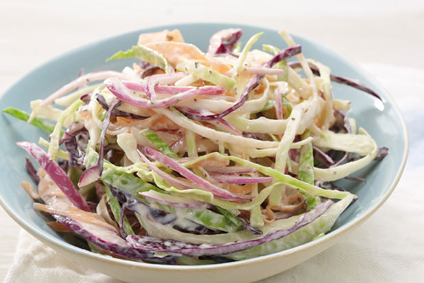 Summertime is all about coleslaw, but unfortunately it's also about bathing suits. This recipe makes both possible, using Greek yogurt as the base for the creamy salad for a healthy alternative. Don't worry, all of you mayonnaise lovers — there's still a touch of mayonnaise in there to make it all the more satisfying.