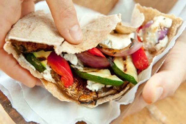 Alongside the hamburgers and hot dogs at our summer cookouts will be these vegetable pitas. Mushrooms, zucchini, bell pepper, and red onion make this sandwich hearty and satisfying, and additions like balsamic and goat cheese make it extra flavorful.