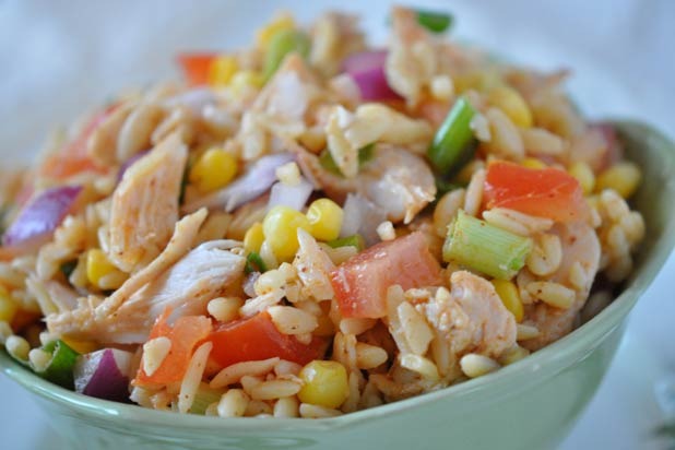 A lot of times during the summer it's ideal to have an all-in-one dish that tastes great at room temperature or cold. This Mexican orzo chicken salad uses fresh, bright ingredients and is perfect to take to a picnic or have on hand for a quick snack.