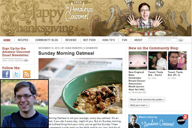 The title says it all—the Amateur Gourmet, also known as Adam Roberts, cooks, writes and eats with a passionate sense of humor and no frills.