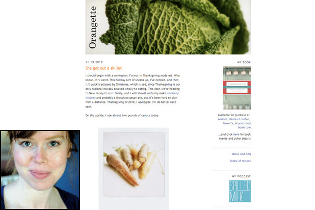 Orangette is Bon Appetit columnist Molly Wizenberg's food blog. It is full of daily musings and stories about her everyday dealings with food and cooking. The occasional recipe and beautiful photos are also included.