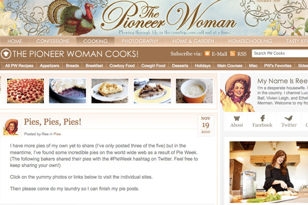 Ree Drumond (known as the Pioneer Woman) writes this daily blog about her life as a "domestic country wife" and the recipes she makes for her family. This month, Bobby Flay challenged Drummond to a Thanksgiving Throwdown.