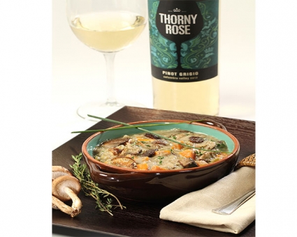 Add 1/4 cup of the Thorny Rose Pinot Grigio to your Mushroom Chestnut soup for an instant flavor boost!
