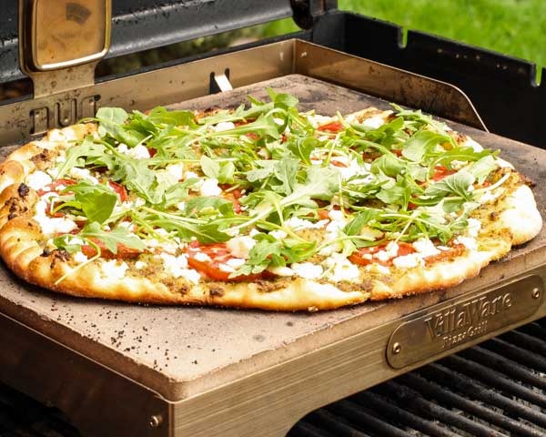 Pesto Pizza with Goat Cheese, Tomatoes, and Arugula