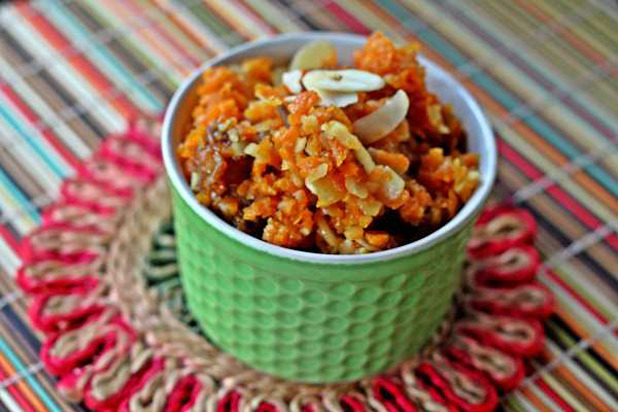 Gajar Halwa is a traditional carrot fudge pudding that is enjoyed in the winter months.