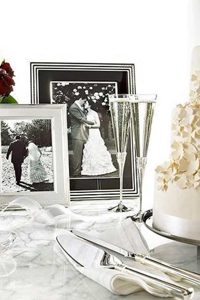If anyone knows weddings it's Vera Wang. Stock up on her "With Love" set that includes a cake cutting set, a picture frame, champagne flutes, and a matching vase.