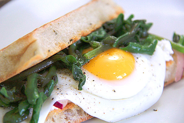 Be Mindful. Be Human. Eat is a blog about finding the balance of flavors in the food that we make and eat. Emphasizing the mindfulness involved in finding this balance, they remind us that the process isn't always easy, but it's worth it, and that food is to be enjoyed, shared, and remembered. In this post, Be Mindful. Be Human. Eat recreates a restaurant's vegetarian breakfast sandwich with fresh-baked focaccia bread, a sunny-side up egg, red onions, sautéed spinach, and goat cheese.