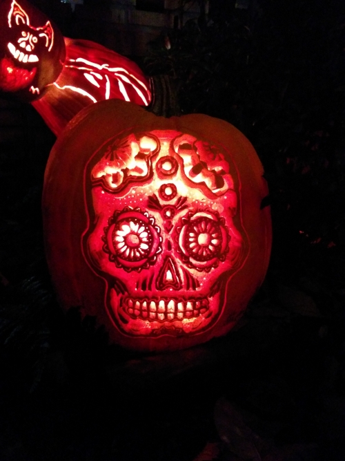 Honoring the Day of the Dead, this sugar skull pumpkin is dead-on.