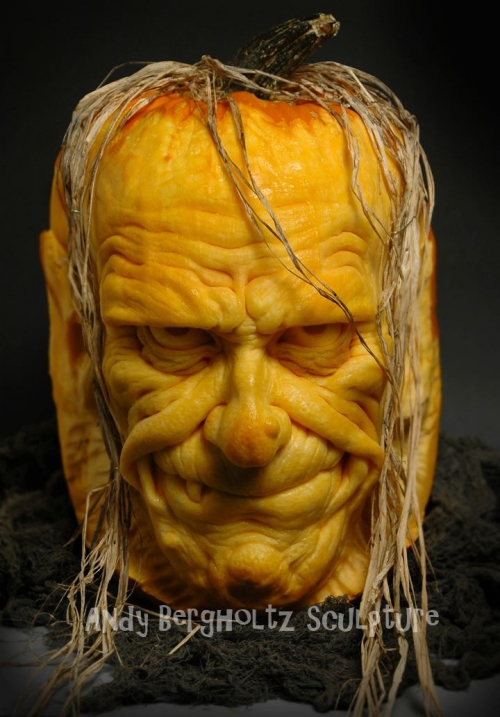 This is sculpture artist Andy Bergholtz's first pumpkin sculpture. Beginner's luck, right?