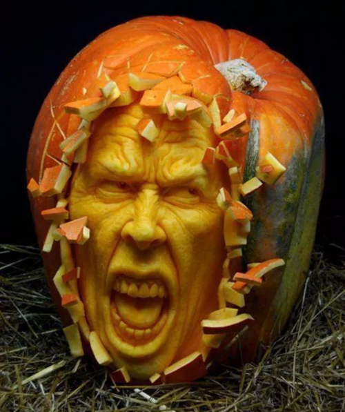 Professional artist Ray Villafane sculpts and carves pumpkins that will make your jaw drop. Just look at some of his mind-blowing creations: