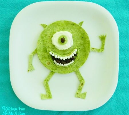 You won't need to keep an eye on your kiddo to make sure his snack gets eaten. Use spinach tortillas to give the usual kid-favorite the right green color for a tasty Mike Wasowski quesadilla.