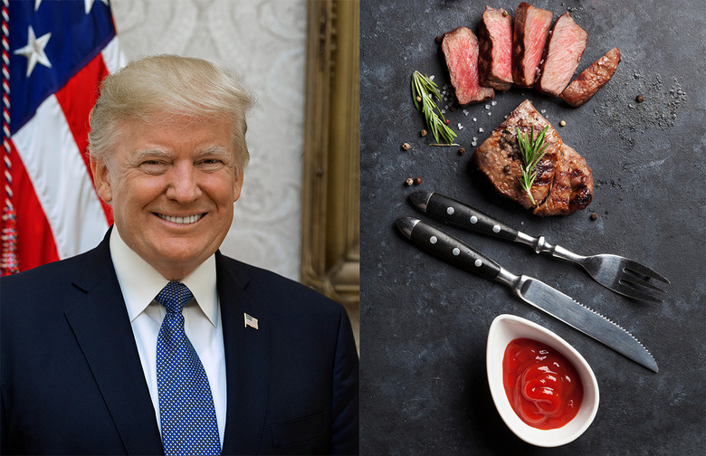 Donald Trump is a man of simple tastes and food preferences. His favorite meal includes well-done steak with ketchup and cherry vanilla ice cream. When he moved in to the White House, he cleared the kitchen of the Obamas' healthy foods and stacked the pantry with Lay's potato chips. He also is a big fan of fast food, including McDonald's and KFC. To find out more about Trump's eating habits, read our complete guide to his favorite foods.