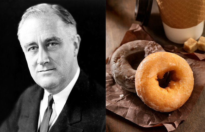 FDR and Eleanor Roosevelt had an all-American diet. Their favorite dinners included hearty fare such as creamed chipped beef, bread pudding, and fried cornmeal mush with maple syrup. The Roosevelts also had a particular love of doughnuts and would eat them at breakfast and teatime.