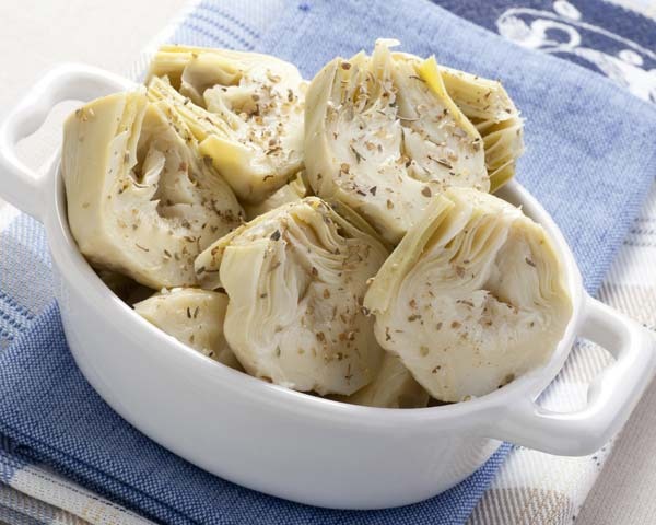 - 4 artichoke hearts, choke removed and sliced in half, soaked in lemon water