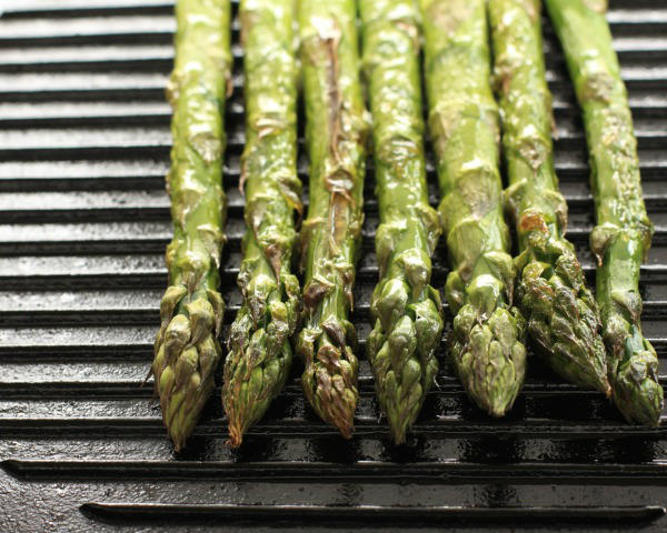 The prepared asparagus spears can then be grilled in a single layer until they've softened slightly and have a few visible char marks. To finish your grilled asparagus, try drizzling them with lemon juice or freshly-grated Parmesan cheese.