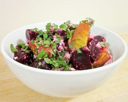 Don't like beets? I wasn't really a fan of them either until recently. Give these a shot — they might just change your mind. Colorful baby beets get all dressed up with orange blossom water, which gives them a pleasant floral aroma and flavor. Salty, slightly tangy Bulgarian feta contrasts with the sweetness of the beets, and the mint rounds out the flavors. See all recipes with feta. Click here to see Just Beet It.