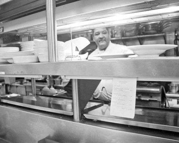 We'll be popping into all types of restaurant kitchens — large and small, slow and busy, high-class and low-brow. We want to see what goes on from the first chop of an onion on the prep table to the final wipe-down at the end of a long night. Through black and white photographs, we're going to capture the rhythm of the clanking pans and the hum of multiple voices rolled into one collective kitchen sound.