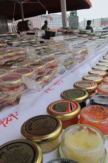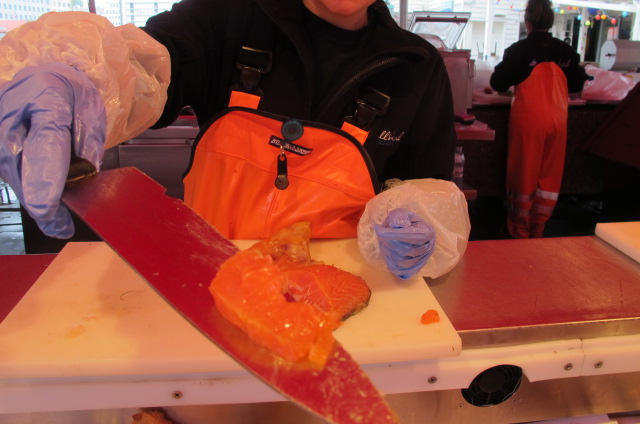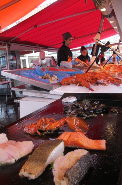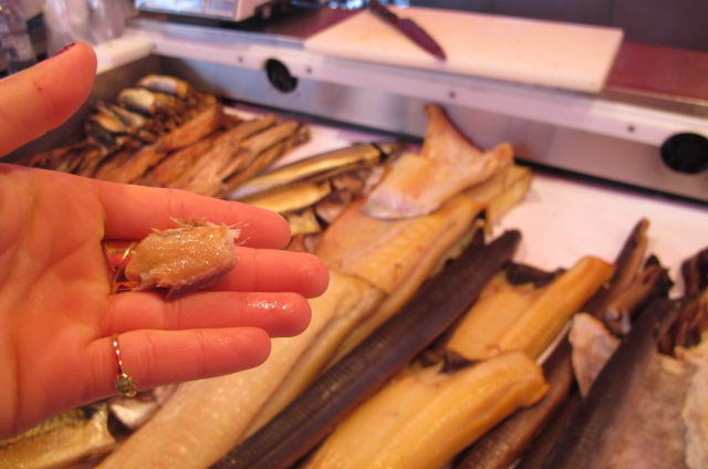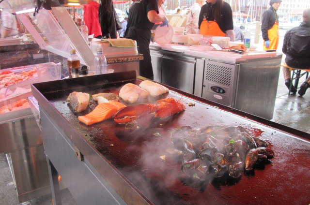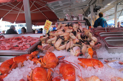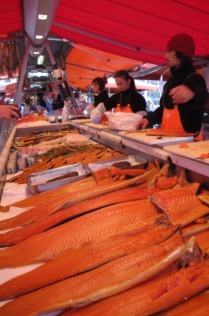 Hands down, I tried the best fish I've ever had in Bergen, Norway. Along the dock, hugging the ocean in a semi-circle is the fish market, where every vendor eagerly invites you to try their fish with a fresh fat chunk on their lurring knives. From the smoked and spiced variety to the beautifully bare and raw, salmon, cod and tuna were up for grabs. Talk about melt in your mouth (watch out M&Ms). If you want to walk with a serving for yourself, there is a tiny catch (pun intended): the price tag. Norway's notoriously expensive commerce does not escape this humbly casual market. Suffice it to say, I was grateful for the sample through. Visualize my stroll...