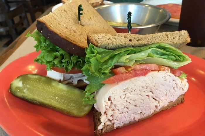 This teeny tiny restaurant is literally a shack on the side of the road, and it's so small that guests sit on picnic tables outside. It has a surprisingly large menu, with a wide variety of sandwich options (including a killer Cuban), but the thing to order is Guy Fieri's Triple D Triple Play (which Fieri created while there filming an episode): a 6.5-ounce fresh-ground patty topped with slow-roasted pork, pastrami, Swiss, American, tomatoes, jalapeños, onion rings, and mustard on sourdough.