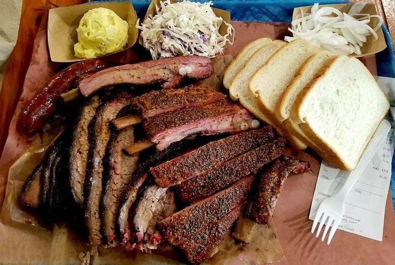 Less than a 40-minute drive from Austin is the small town of Taylor, Texas, and in Taylor, Louie Mueller Barbecue. This barbecue spot features big, meaty beef ribs, which they rub with salt and cracked pepper before slow-cooking them over post oak wood; pork spare ribs, which get salt-and-pepper rubbed just like the beef ribs; and their newest entrée, baby back ribs, which are dusted with a "magic" spice mix and basted with a sweet glaze. Let's not kid ourselves here — just order all three, because you know you want to. You can blame it on us; we won't mind.