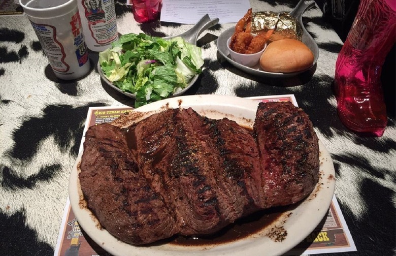 Everything really is bigger in Texas, particularly the famous 72-ounce steak at The Big Texan Steak Ranch. If you can eat it all (as well as a variety of side dishes) in one hour, you can have it for free. The challenge is said to go back to the restaurant's early days in the 1960s when its owner held contests among local cowboys to see who could eat the most. One day, a contestant ate five steaks, a salad, a shrimp cocktail, a baked potato, and a bread roll; the steak came out to four and a half pounds, and so the 72-Ounce Steak Challenge was born.