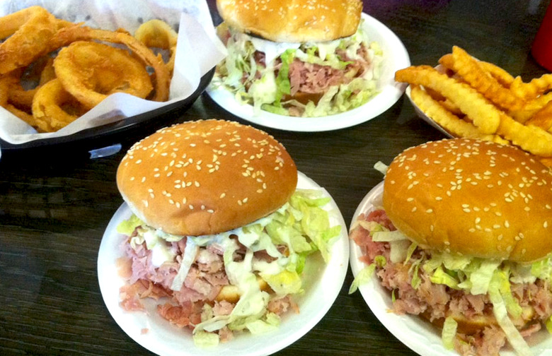 Besides being a great name for a restaurant, Cam's Ham is also the name of a West Virginia institution that's been serving legendary ham sandwiches (yes, those exist) since the 1950s. To make these beauties, a toasted bun is topped with lean ham that's been sliced super-thinly ("flaked"), and simply topped with shredded lettuce and secret sauce.