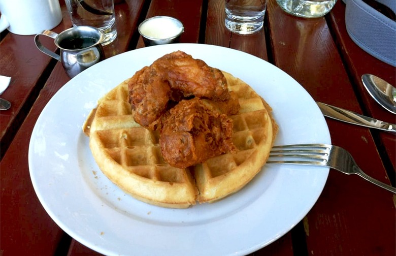 The adorably quaint Cafe Genevieve, located inside a circa-1910 log cabin and in business since 2010, is a Jackson Hole destination. Chef Joshua Governale's menu is Southern-influenced, with standouts including fried rockfish, smoked turkey leg with mole colorado, and elk sirloin, but don't pass up the opportunity to try Wyoming's best fried chicken, available either on a waffle during brunch or with mac and cheese during dinner. The chicken is dunked in batter before heading into the fryer, so the resulting fried chicken is coated in a shatteringly crisp crust that hides perfectly cooked chicken underneath.