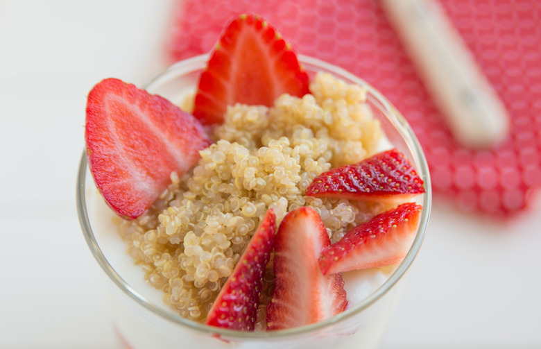 Chef Jason Roberts, author of Good Fast Food, has this to say about his recipe: "A breakfast parfait or sundae is a great way to include a little bit of everything on your fork or spoon in the morning. You can make this parfait a day ahead, making it a perfect grab-and-go breakfast. Breakfast parfaits are pretty simple to put together, and the only limit to the flavors and textures in the parfait is your own imagination. To simplify this recipe, you could use muesli instead of the quinoa, almonds, and chia seeds." For the Breakfast Parfait recipe, click here.