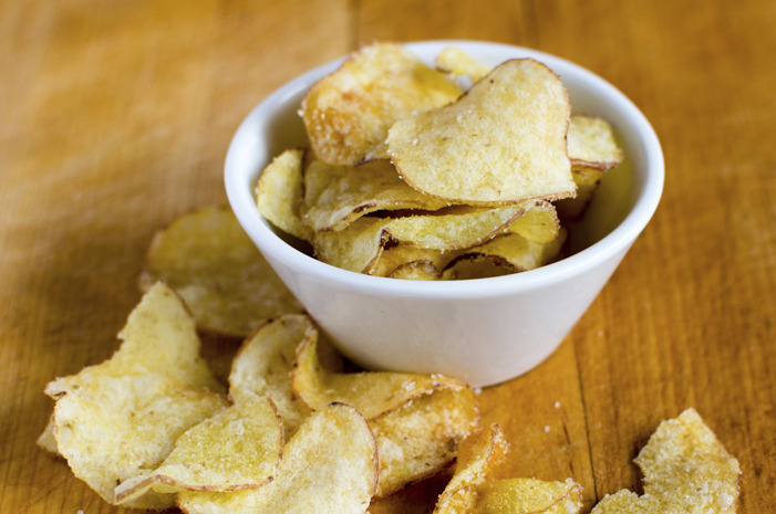The ideal potato chip is the combination of salty flavor, crunchy texture, and a hint of oil for taste. Being diligent about the width of your chip and exactly how you fry it is the only way you'll achieve that. For the non-traditional, a little barbecue or sour cream and onion seasoning is the perfect way to spice it up in addition to some salt. The perfect potato chip pairs well with guacamole or salsa.  — Anne Dolce