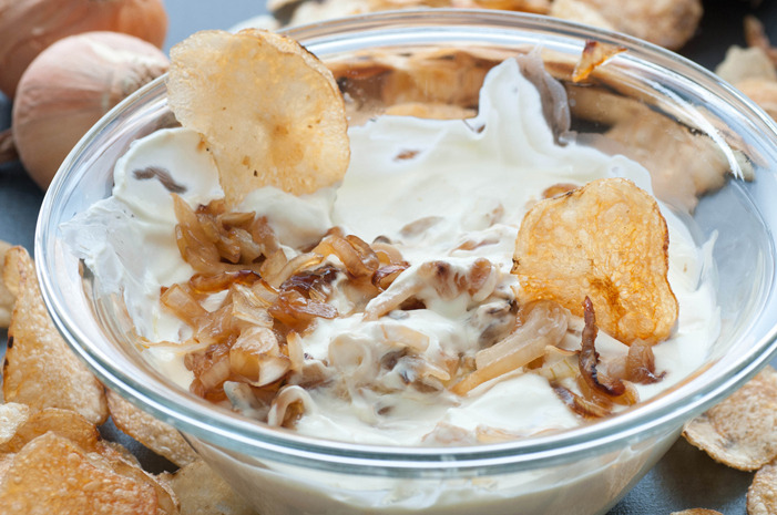 Here you have a homemade onion dip that is inspired by the 1954 Lipton's Onion Soup Mix hit commercial. Back then, you would mix onion soup mix with sour cream, and bam, you have a delicious dip. While this dip has a few extra ingredients, we promise it tastes just as delicious. Pair this dip with DIY Potato Chips for a tasty tailgating snack.