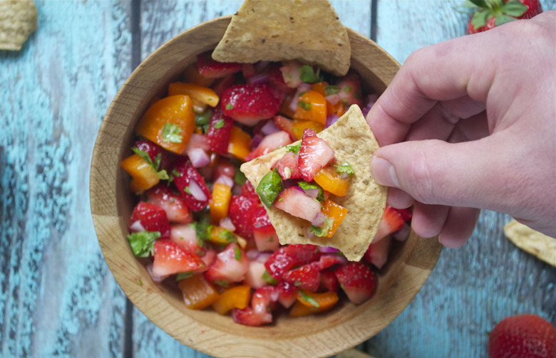 This recipe has acidity, spice, and sweetness — everything you require in an afternoon snack. This salsa has many of the same ingredients as tomato-based salsa: cilantro, onions, lemon juice, and garlic. Just omit the tomatoes and add in strawberries. Enjoy with chips or use as a topping for fish or chicken. Click here for the recipe.