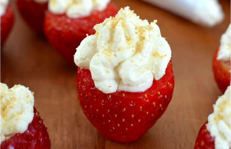 This recipe kind of reminds you of strawberries and whipped cream, but elevated to a whole new level. Instead of having plain strawberries or strawberries and whipped cream, try cheesecake-stuffed strawberries. Make the cream cheese mixture, pipe it right on top, and sprinkle with graham crackers. If the recipe is too enticing, you can leave the cream cheese mixture in a bowl and eat it right from there. Click here for the recipe.